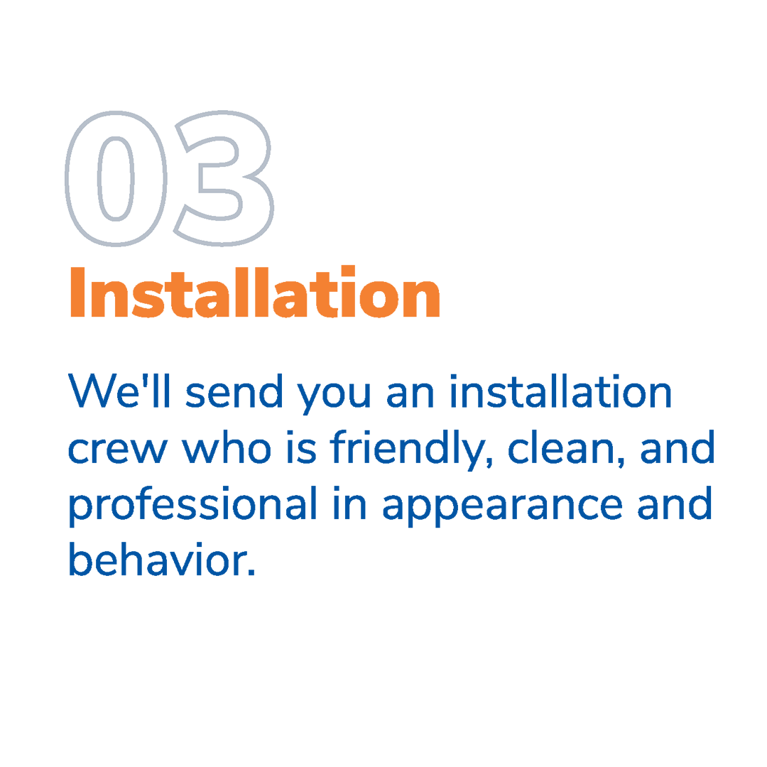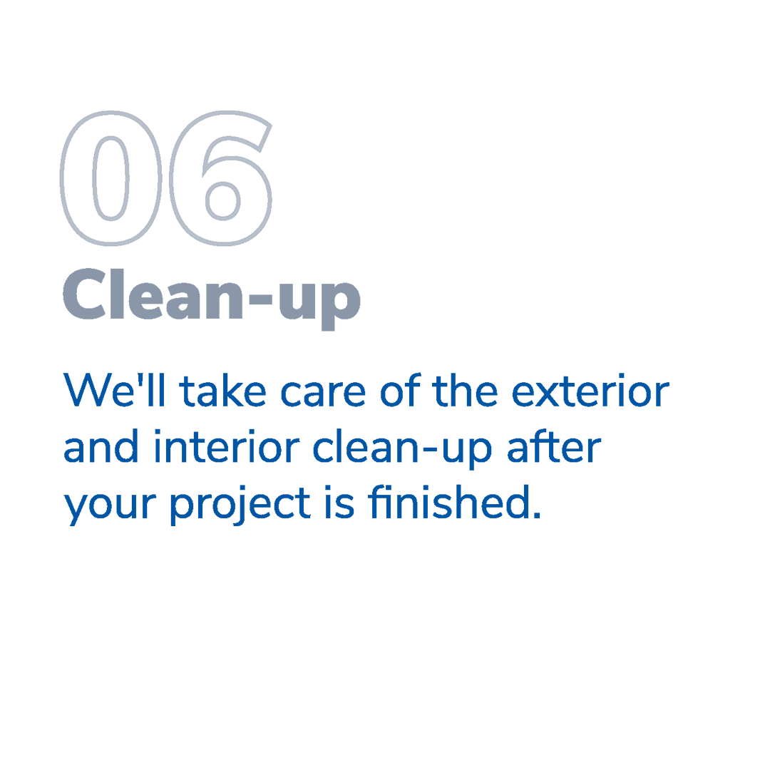 ¡Hora de comenzar el proyecto! En los días previos a la llegada de nuestro equipo de instalación, te enviaremos instrucciones sobre cómo preparar tu casa adecuadamente. Una vez que comience el trabajo, nuestro equipo tratará tu casa como si fuera nuestra. También nos aseguraremos de limpiar todas las zonas renovadas, ¡y dejaremos tu casa en mejor estado que cuando llegamos!